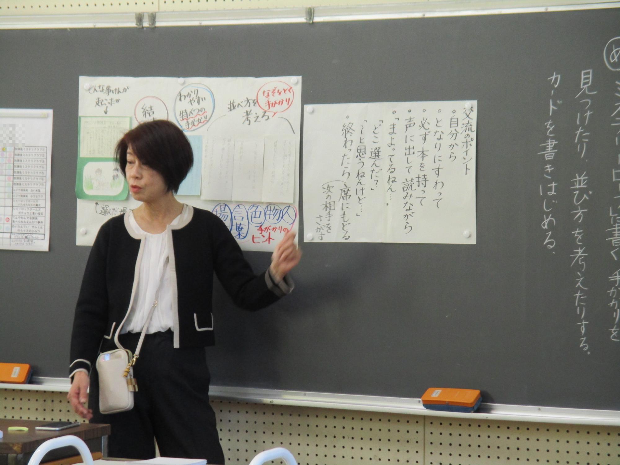 菩提寺北小学校の2年生国語科で、学校図書館の機能を活用した授業が行われました。市内の図書館教育主任や学校司書が授業を参観し、その後の研究会では「主体的・対話的で深い学びを実演する授業となっていたか(目的意識、単元計画、発問や問い返し、振り返り等)」、「学校図書館の機能(学校司書と共に)を生かした学校図書館を活用した授業づくりについて(各校の取組の交流)」について協議しました。