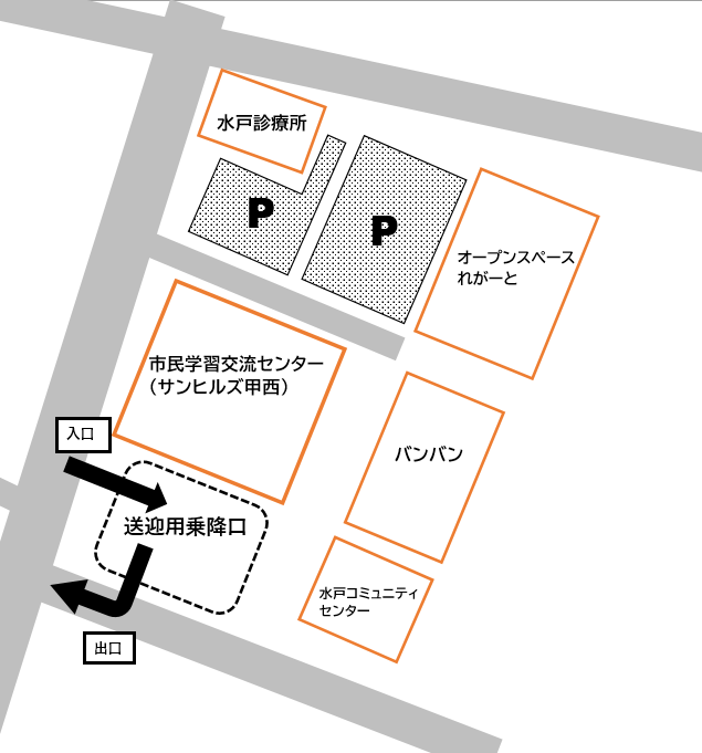 ●送迎は市民学習交流センター敷地内を御利用ください。(場内一方通行)